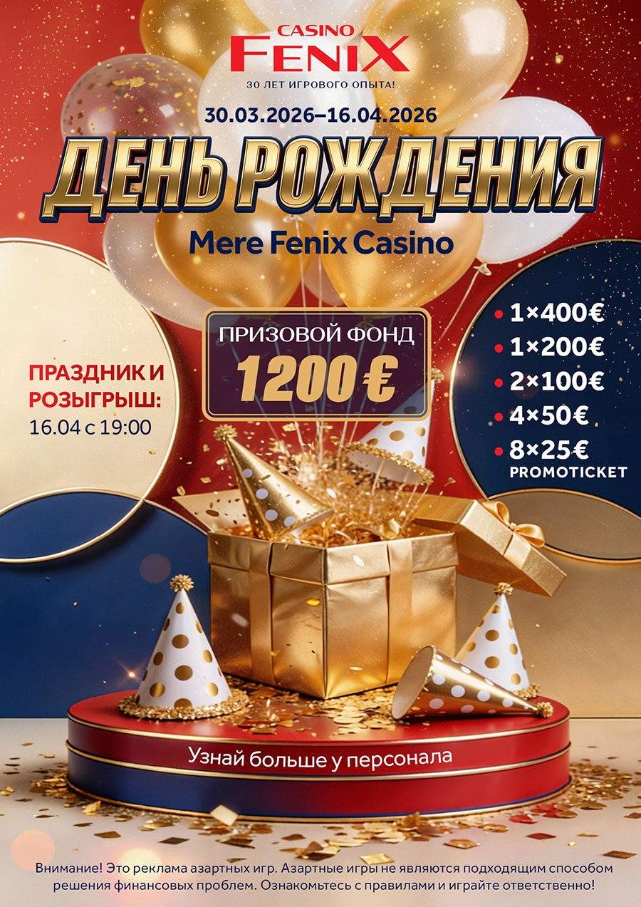 Дополнительная азартная игра «День рождения Mere Fenix Casino» будет проходить в игровом зале Mere Fenix Casino.