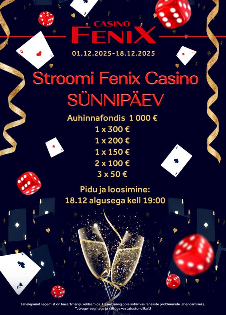- Auhindade väljamängimine toimub Stroomi Fenix Casino mängusaalis.