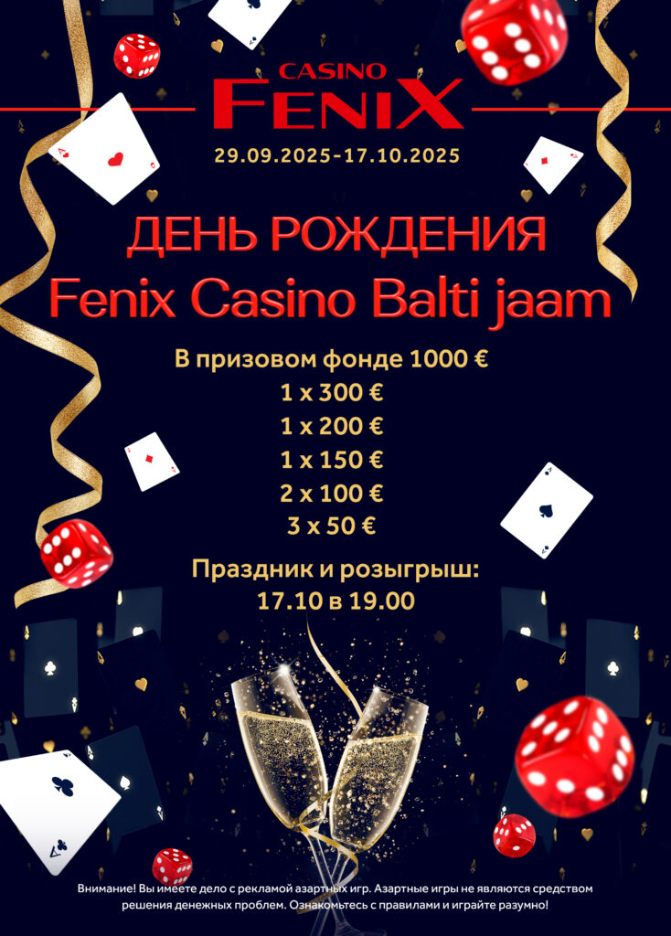 • Täiendav õnnemäng “Balti jaama Fenix Casino sünnipäev” toimub Balti Fenix Casino mängusaalis.