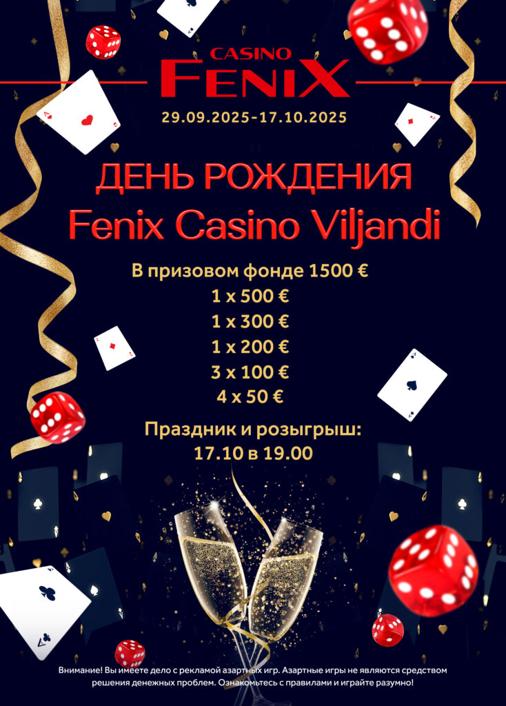 • Täiendav õnnemäng “Viljandi Fenix Casino sünnipäev” toimub Viljandi Fenix Casino mängusaalis.
